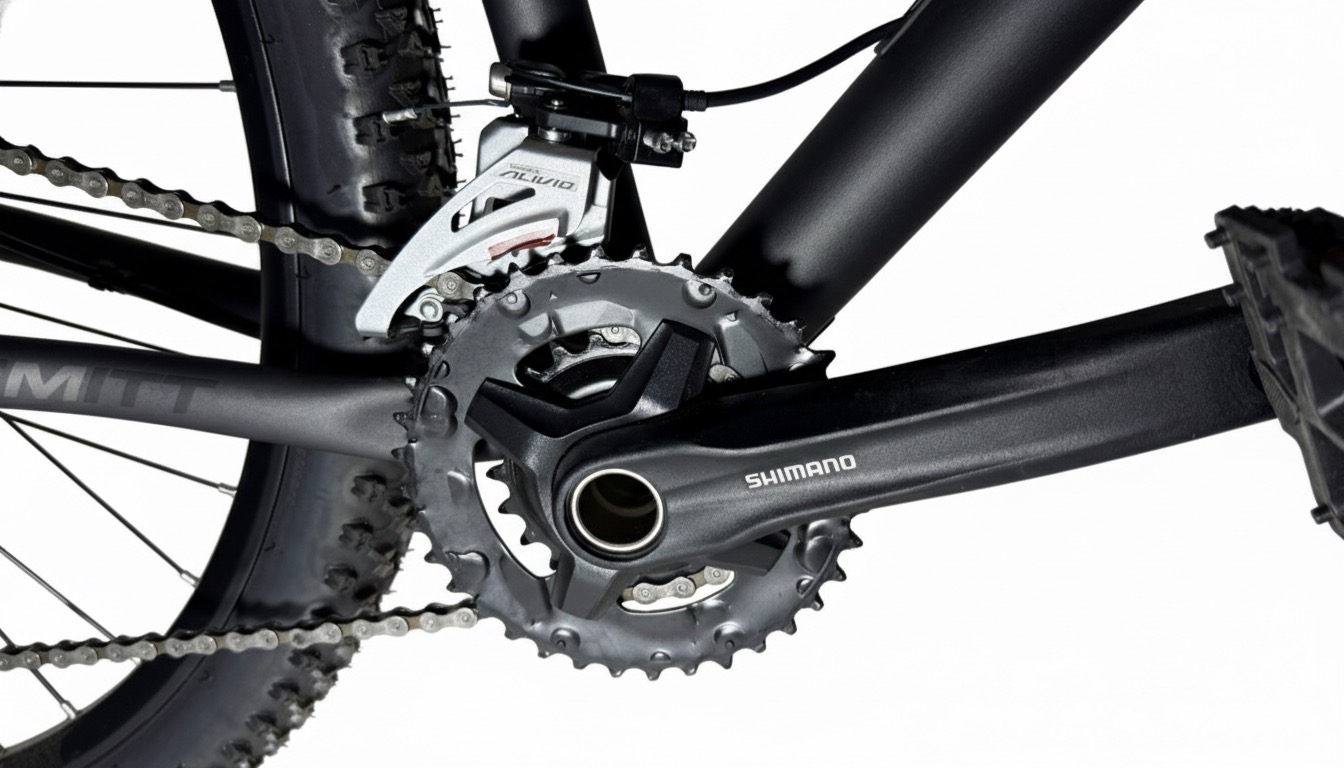 Quadro: FIRST SMITT Aluminio 6061 CABEAMENTO INTERNO Suspensão: MT20 GTS 38 C/TRAVA NO GUIDÃO ALUMINIO Mesa: ABSOLUTE NERO ALUMINIO Guidão: ABSOLUTE NERO ALUMINIO Canote: ABSOLUTE NERO ALUMINIO Câmbio Traseiro: SHIMANO ALIVIO 9V Cambio Dianteiro: SHIMANO ALÍVIO Corrente: SHIMANO HG53 9V Passador: SHIMANO ALIVIO 2X9V RAPIDFIRE Freios: SHIMANO MT200 HIDRAULICO Cassete: SHIMANO 11/36 Pedivela: SHIMANO Duplo INTEGRADO C/MOVIMENTO CENTRAL SHIMANO Rodas: CUBOS ROLAMENTO C/ARO ILHÓS ALUMINIO Pneus: cravo 2.10 Selim: Vazado Manoplas: IMPORTADO